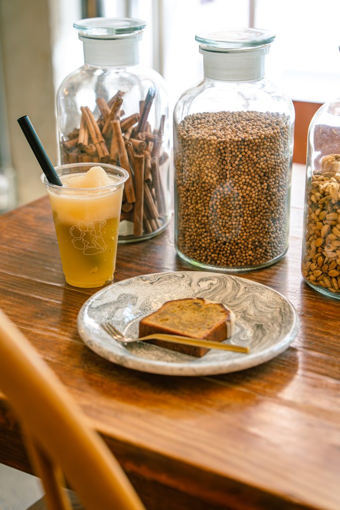お茶のやさしい香りが重なり、秋のはじまりを感じさせる一杯に仕上げました。
